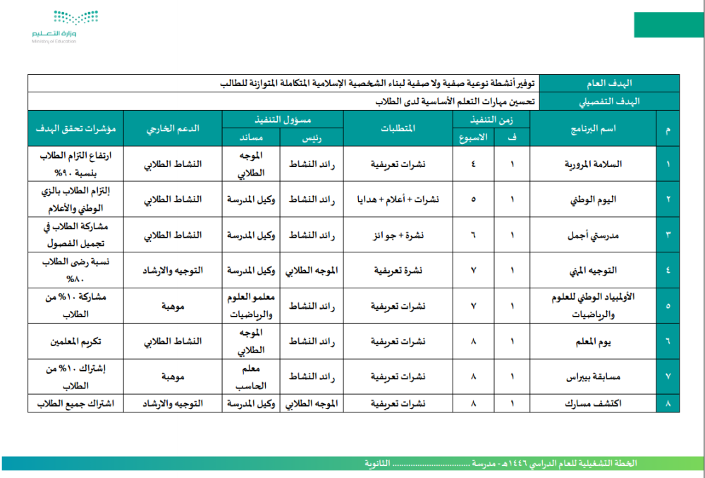 الخطة التشغيلية للمرحلة الثانوية للعام الدراسي ١٤٤٦ هـ