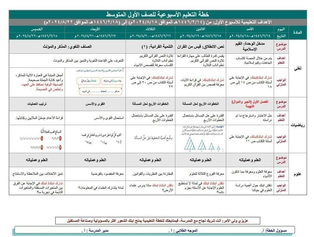 - الخطة التعليمية الأسبوعية مهارات حياتيه ثاني ابتدائي الفصل الدراسي الأول