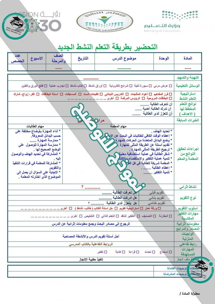 استراتيجية حديثة – خماسي بنائي – وحدات مشروع الملك عبد الله – التعلم النشط – التعلم الرقمي – تحضير منصة مدرستي