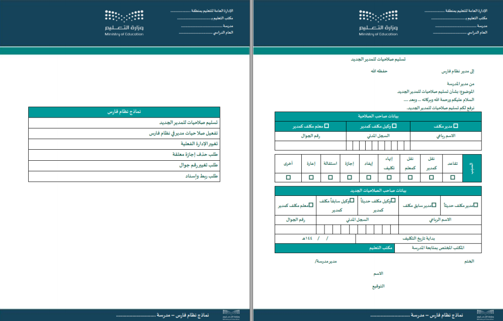 - تسليم صلاحيات للمدير الجديد